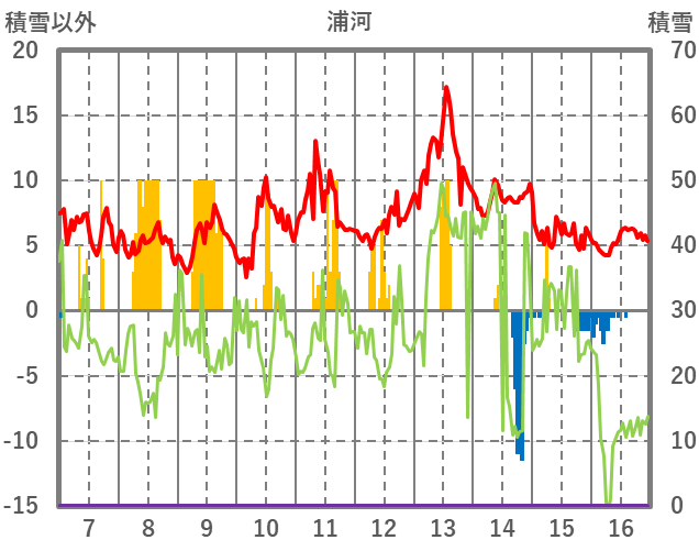 | 日 | 時 | 気温 | 降水 | 風向/風速 | 日照 | 積雪 | 降雪 |