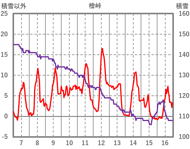 | 日 | 時 | 気温 | 降水 | 風向/風速 | 日照 | 積雪 | 降雪 |