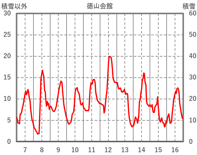 | 日 | 時 | 気温 | 降水 | 風向/風速 | 日照 | 積雪 | 降雪 |