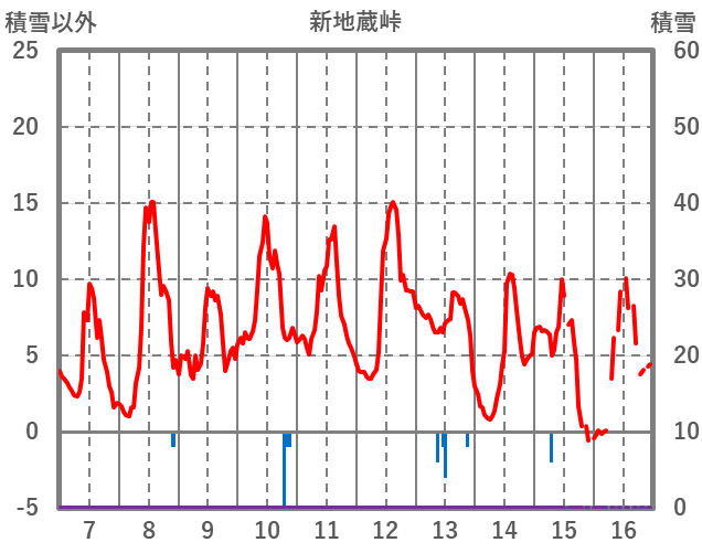 | 日 | 時 | 気温 | 降水 | 風向/風速 | 日照 | 積雪 | 降雪 |