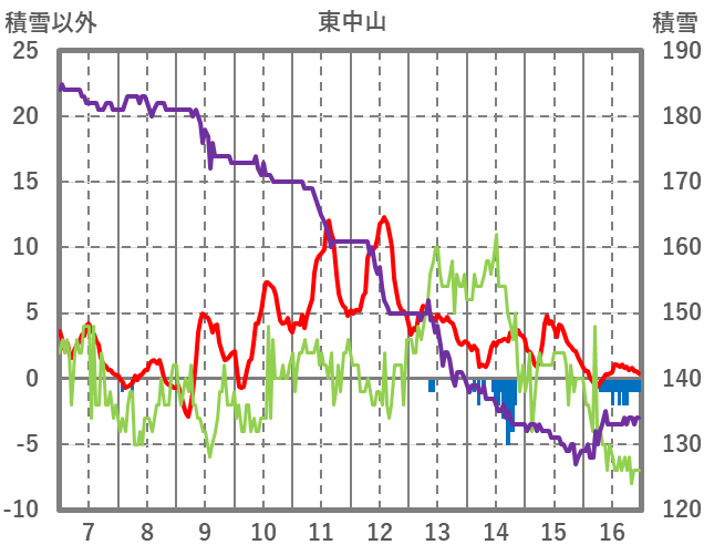 | 日 | 時 | 気温 | 降水 | 風向/風速 | 日照 | 積雪 | 降雪 |