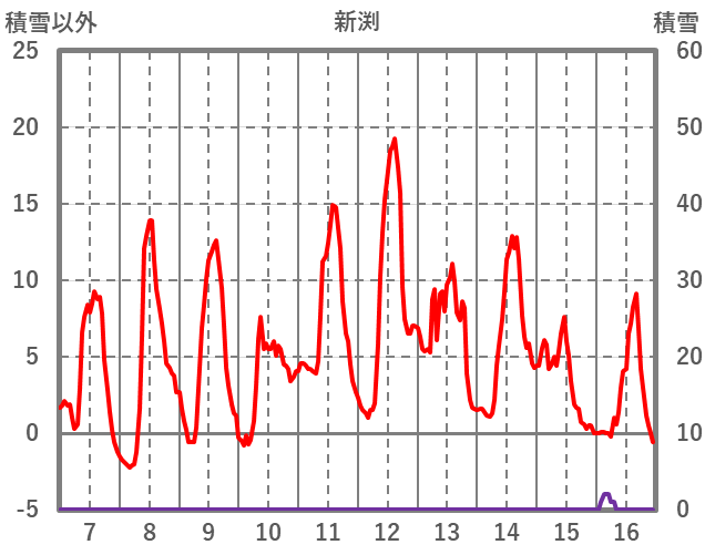 | 日 | 時 | 気温 | 降水 | 風向/風速 | 日照 | 積雪 | 降雪 |
