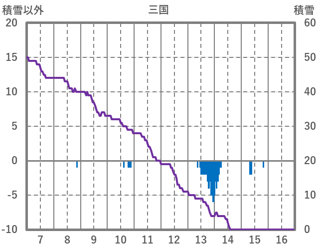 | 日 | 時 | 気温 | 降水 | 風向/風速 | 日照 | 積雪 | 降雪 |