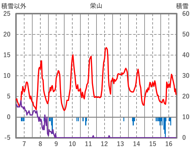 | 日 | 時 | 気温 | 降水 | 風向/風速 | 日照 | 積雪 | 降雪 |