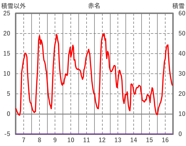 | 日 | 時 | 気温 | 降水 | 風向/風速 | 日照 | 積雪 | 降雪 |