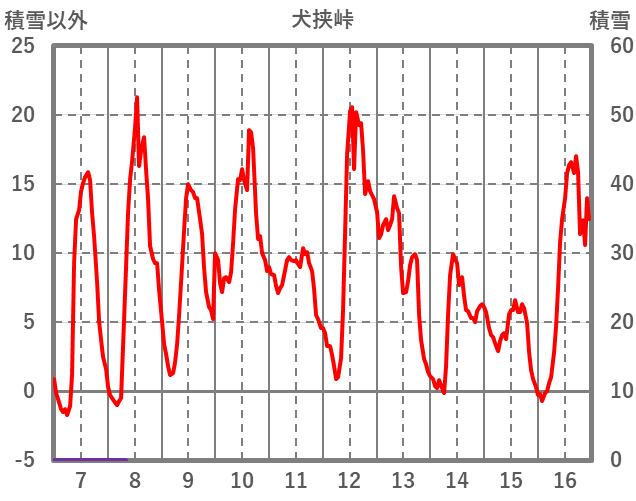 | 日 | 時 | 気温 | 降水 | 風向/風速 | 日照 | 積雪 | 降雪 |