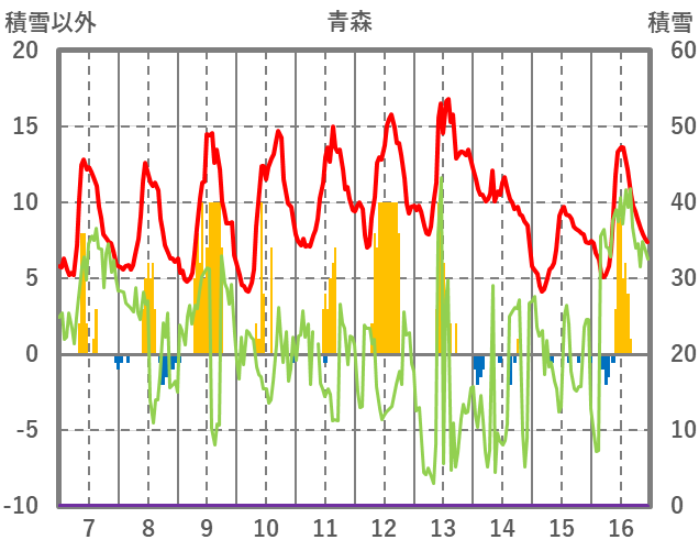 | 日 | 時 | 気温 | 降水 | 風向/風速 | 日照 | 積雪 | 降雪 |