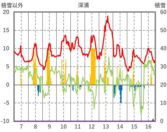 | 日 | 時 | 気温 | 降水 | 風向/風速 | 日照 | 積雪 | 降雪 |