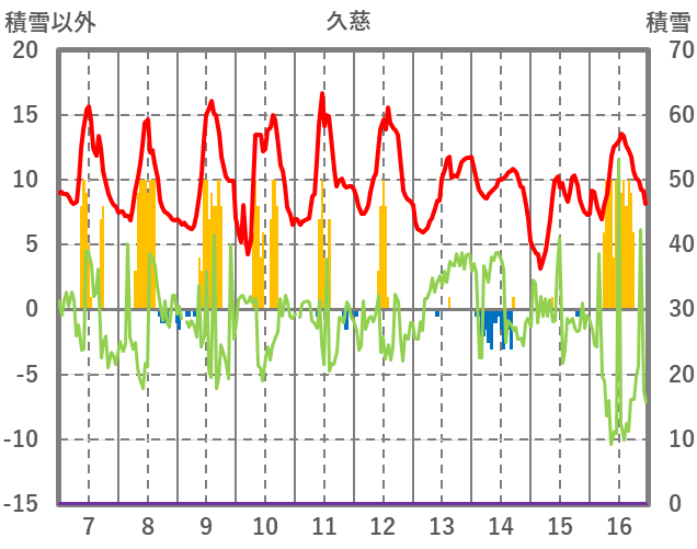 | 日 | 時 | 気温 | 降水 | 風向/風速 | 日照 | 積雪 | 降雪 |