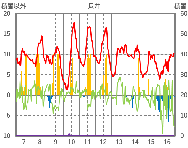 | 日 | 時 | 気温 | 降水 | 風向/風速 | 日照 | 積雪 | 降雪 |