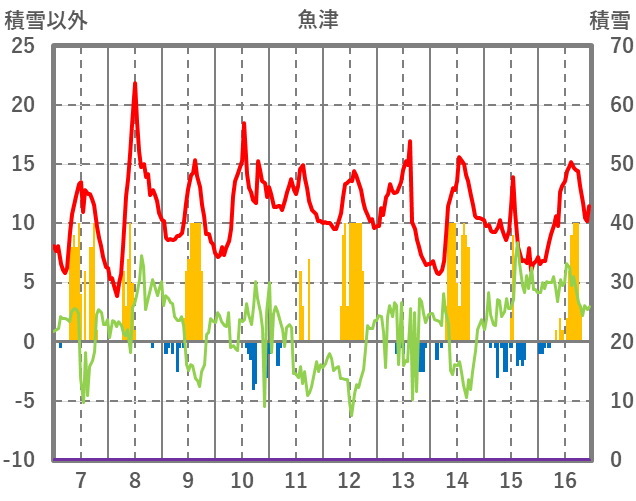 | 日 | 時 | 気温 | 降水 | 風向/風速 | 日照 | 積雪 | 降雪 |