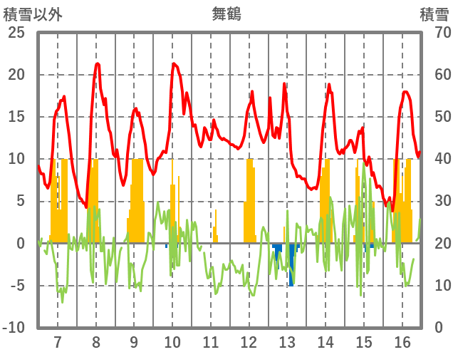 | 日 | 時 | 気温 | 降水 | 風向/風速 | 日照 | 積雪 | 降雪 |