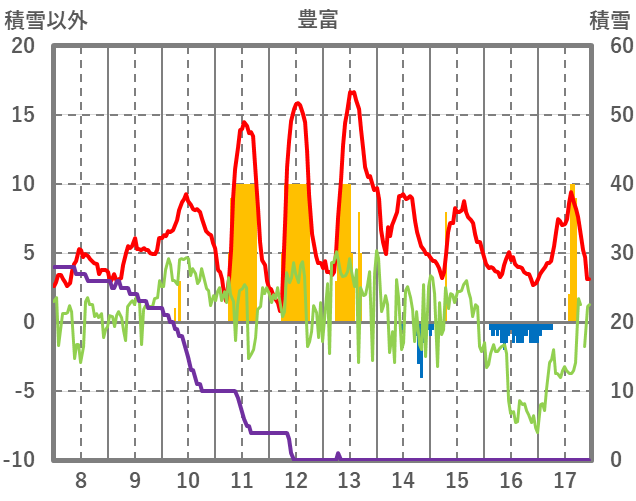 | 日 | 時 | 気温 | 降水 | 風向/風速 | 日照 | 積雪 | 降雪 |