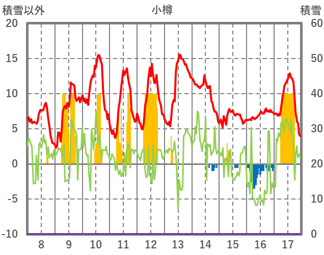 | 日 | 時 | 気温 | 降水 | 風向/風速 | 日照 | 積雪 | 降雪 |