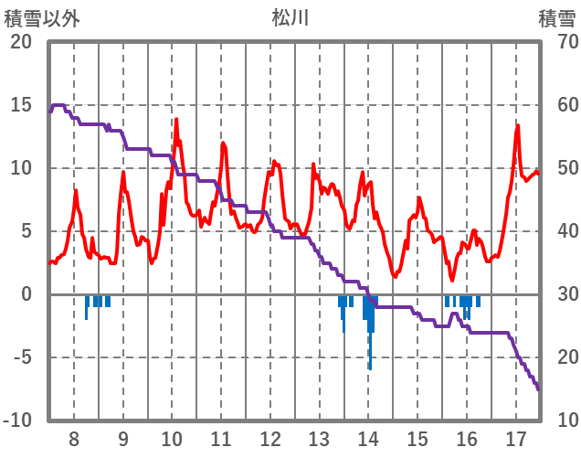 | 日 | 時 | 気温 | 降水 | 風向/風速 | 日照 | 積雪 | 降雪 |