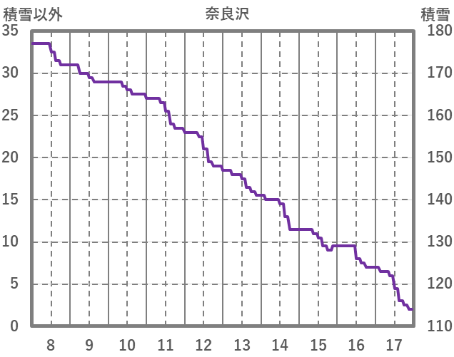 | 日 | 時 | 気温 | 降水 | 風向/風速 | 日照 | 積雪 | 降雪 |