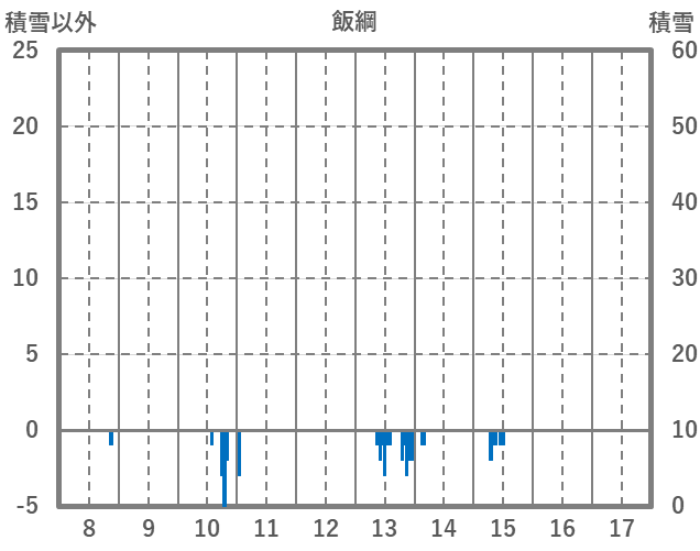 | 日 | 時 | 気温 | 降水 | 風向/風速 | 日照 | 積雪 | 降雪 |