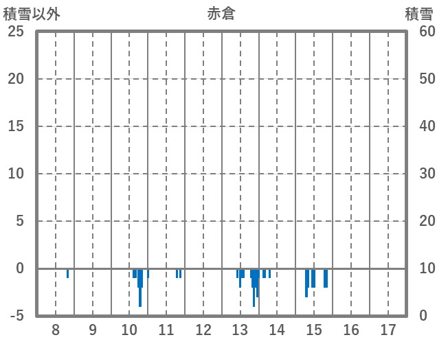 | 日 | 時 | 気温 | 降水 | 風向/風速 | 日照 | 積雪 | 降雪 |