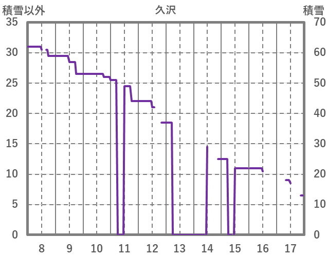 | 日 | 時 | 気温 | 降水 | 風向/風速 | 日照 | 積雪 | 降雪 |
