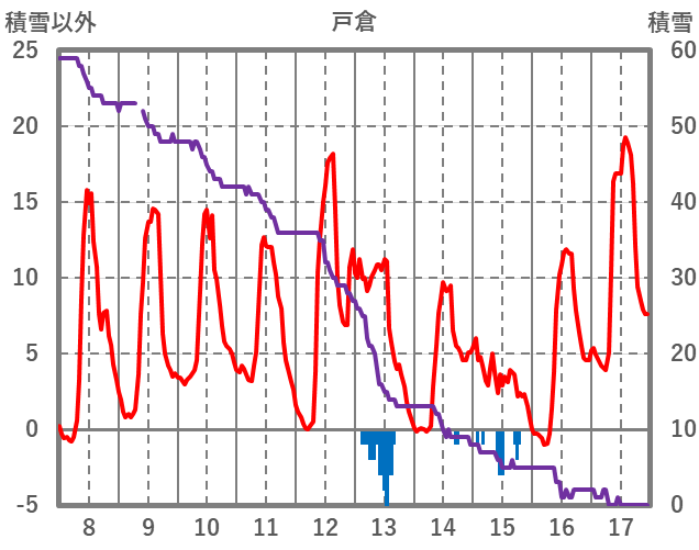 | 日 | 時 | 気温 | 降水 | 風向/風速 | 日照 | 積雪 | 降雪 |