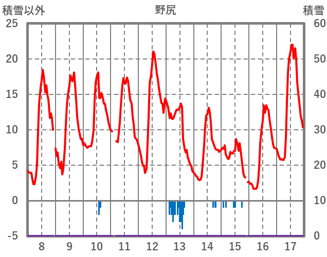 | 日 | 時 | 気温 | 降水 | 風向/風速 | 日照 | 積雪 | 降雪 |