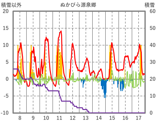 | 日 | 時 | 気温 | 降水 | 風向/風速 | 日照 | 積雪 | 降雪 |