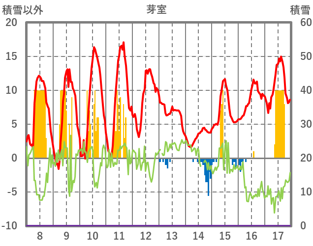 | 日 | 時 | 気温 | 降水 | 風向/風速 | 日照 | 積雪 | 降雪 |