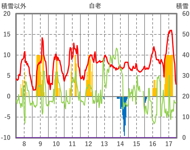 | 日 | 時 | 気温 | 降水 | 風向/風速 | 日照 | 積雪 | 降雪 |