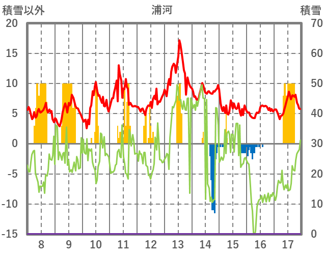 | 日 | 時 | 気温 | 降水 | 風向/風速 | 日照 | 積雪 | 降雪 |