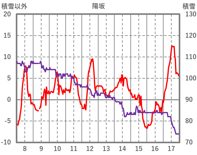 | 日 | 時 | 気温 | 降水 | 風向/風速 | 日照 | 積雪 | 降雪 |