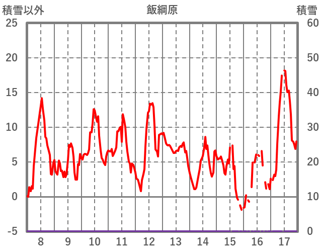 | 日 | 時 | 気温 | 降水 | 風向/風速 | 日照 | 積雪 | 降雪 |