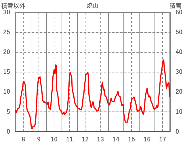 | 日 | 時 | 気温 | 降水 | 風向/風速 | 日照 | 積雪 | 降雪 |