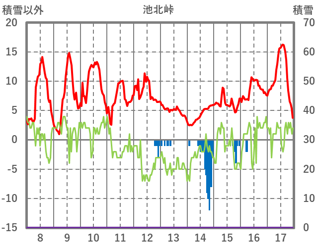 | 日 | 時 | 気温 | 降水 | 風向/風速 | 日照 | 積雪 | 降雪 |