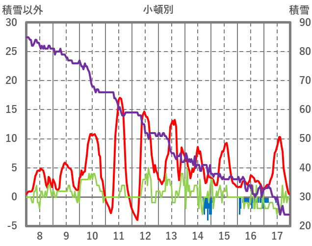 | 日 | 時 | 気温 | 降水 | 風向/風速 | 日照 | 積雪 | 降雪 |