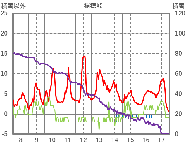 | 日 | 時 | 気温 | 降水 | 風向/風速 | 日照 | 積雪 | 降雪 |