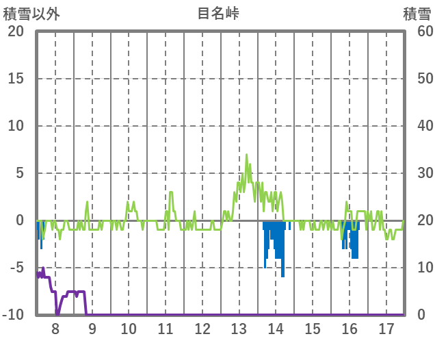 | 日 | 時 | 気温 | 降水 | 風向/風速 | 日照 | 積雪 | 降雪 |