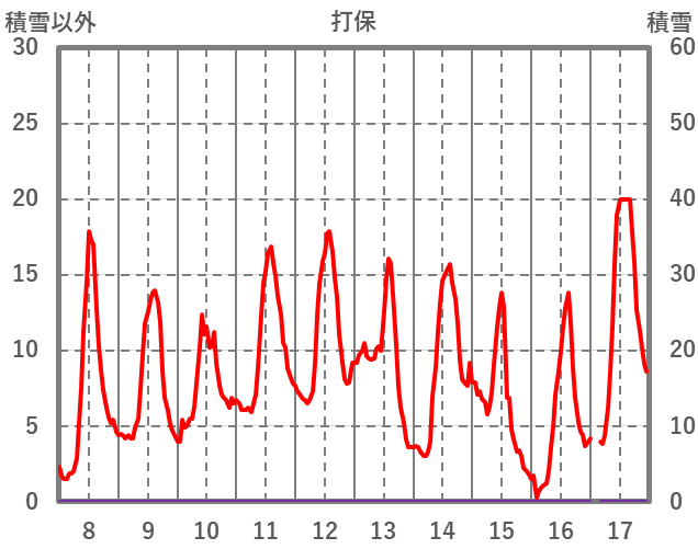 | 日 | 時 | 気温 | 降水 | 風向/風速 | 日照 | 積雪 | 降雪 |