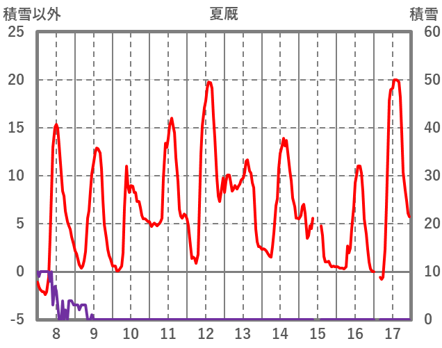 | 日 | 時 | 気温 | 降水 | 風向/風速 | 日照 | 積雪 | 降雪 |