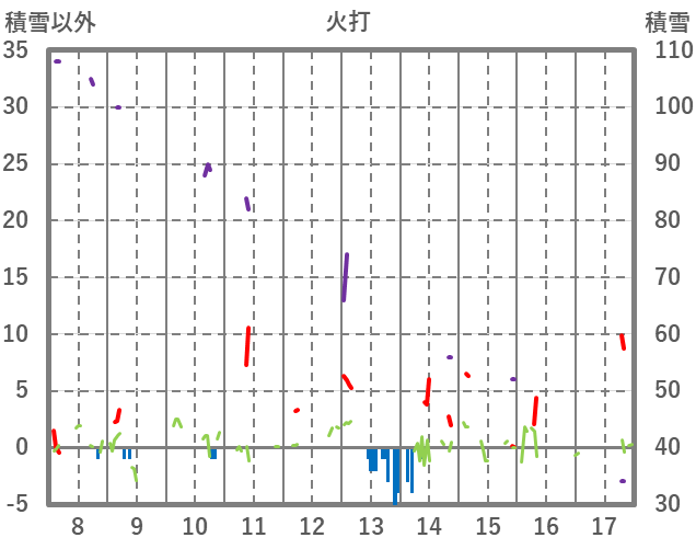 | 日 | 時 | 気温 | 降水 | 風向/風速 | 日照 | 積雪 | 降雪 |