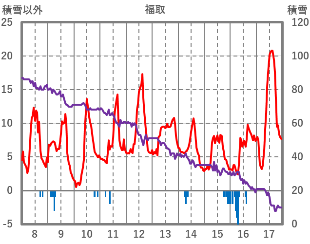 | 日 | 時 | 気温 | 降水 | 風向/風速 | 日照 | 積雪 | 降雪 |