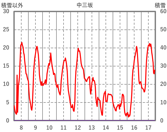 | 日 | 時 | 気温 | 降水 | 風向/風速 | 日照 | 積雪 | 降雪 |