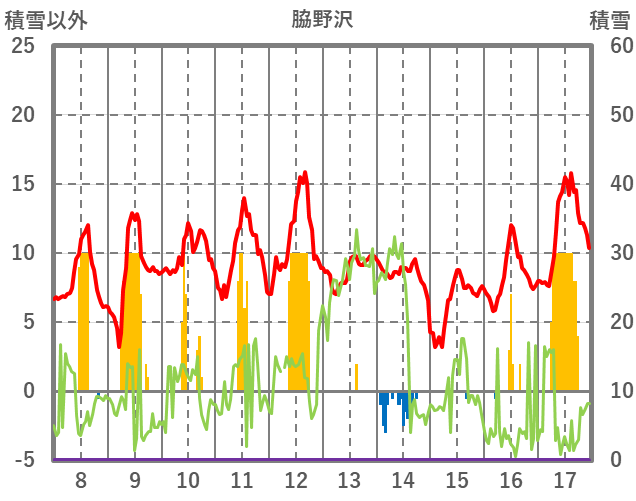 | 日 | 時 | 気温 | 降水 | 風向/風速 | 日照 | 積雪 | 降雪 |