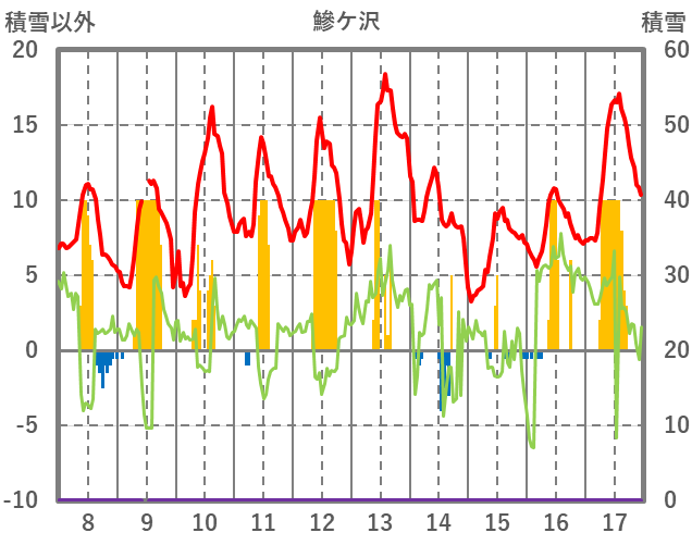 | 日 | 時 | 気温 | 降水 | 風向/風速 | 日照 | 積雪 | 降雪 |