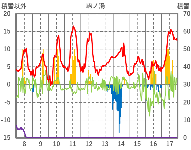 | 日 | 時 | 気温 | 降水 | 風向/風速 | 日照 | 積雪 | 降雪 |
