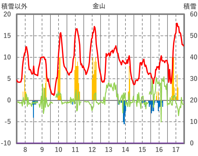 | 日 | 時 | 気温 | 降水 | 風向/風速 | 日照 | 積雪 | 降雪 |
