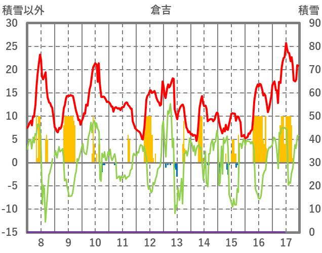 | 日 | 時 | 気温 | 降水 | 風向/風速 | 日照 | 積雪 | 降雪 |