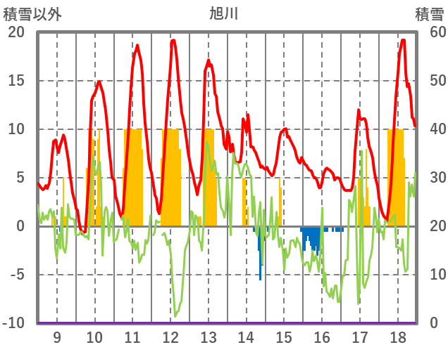 | 日 | 時 | 気温 | 降水 | 風向/風速 | 日照 | 積雪 | 降雪 |