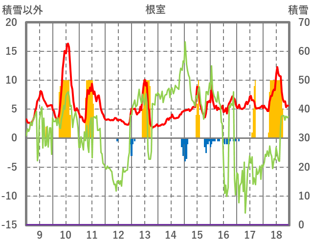 | 日 | 時 | 気温 | 降水 | 風向/風速 | 日照 | 積雪 | 降雪 |