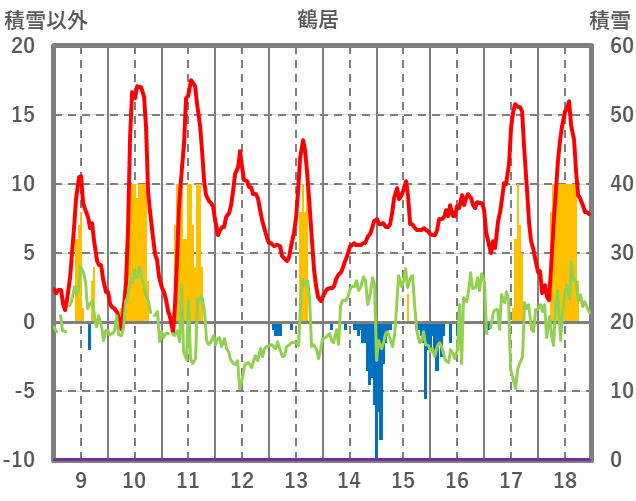 | 日 | 時 | 気温 | 降水 | 風向/風速 | 日照 | 積雪 | 降雪 |