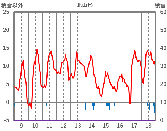 | 日 | 時 | 気温 | 降水 | 風向/風速 | 日照 | 積雪 | 降雪 |